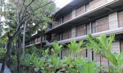 Architecture – This block is designed to dictate sheer simplicity. The architecture treads very lightly upon the ground on which they sit, bringing into focus the effortlessness of the structure. Despite its simplicity in design, the rooms are cozy and aesthetically pleasing. The vocabulary of exposed brick work, cement finish and granite which characterizes the campus, has been continued in this building. An attempt has been made to reinterpret the traditional use of materials in a contemporary style, which is reminiscent of ideologies in spirituality and Zen philosophy. The existing natural terrain characterized by a thick green cover of shrubs, bushes and coconut trees were the basic guideline considered while designing this block.