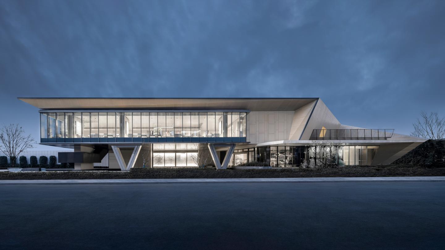 The building is approached from the entrance on the northeast side. The outdoor space in the front yard of the building uses the circuiting path of the front door in Jiangnan garden for reference, and uses the form of pieces of wall to make staggered combination. The staggered wall and hollow roof echo with the shadow under the sunlight, forming a series of ambiguous diffuse space as the preface to enter the building.