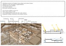 Focus on indigenous architecture including Modularity of spaces and prefabricated with local materials which provides the basics of simple living and cost reduction and enables ease of execution in the initial design.