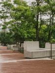 Materiality is key, particularly in such a delicate environment. Pavement is built using blocks of recycled low value ceramic stock, cut and reassembled, resulting in a warm red pinstripe. Along with stone work, stone paving of different sorts and rusted steel, the intervention blends in the landscape.