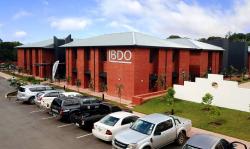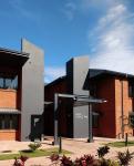 Lusaka experiences high diurnal temperatures that rapidly heat up internal spaces especially when the afternoon western sunshine penetrates the building. The design priority was to minimise this penetration on both sides, with all windows positioned within a recess and large overhanging eaves and canopies. The soft landscaping was planned from the earliest stages and surrounding all the buildings with lush greenery was also pivotal, and a green corridor between the two buildings provided an avenue for trees to provide cooling and shade to the neighbouring buildings, while promoting a wind to provide evaporative cooling. Internal layouts were studied to maximise views. Parking was again planned with a row of trees on the external sides of the buildings.
