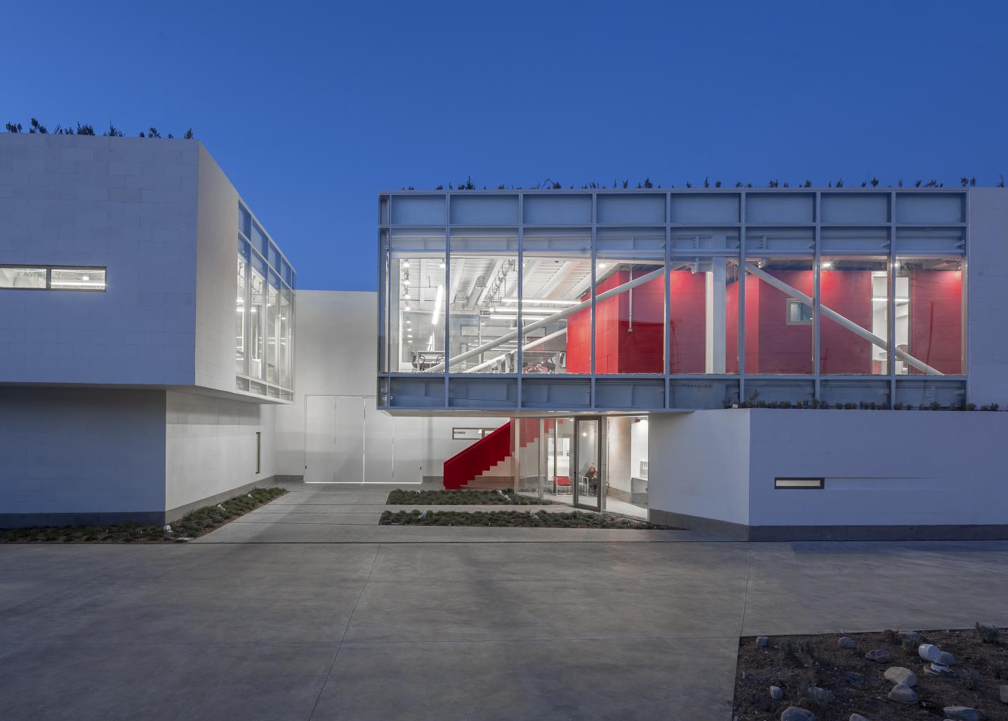 One of our primary goals of design was to expose materials. We believe that the use of exposed materials not only creates an industrial feel in the spaces, also makes less harm to the environment. Structures are made of steel, floors are made of concrete, walls are made of prefabricated concrete blocks, glass, prefabricated concrete panels, and stairs are made of in-site concrete without any other materials being added.
