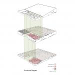 The concept of this complex took place in two outdoor void spaces perpendicular to each other. One void stretches south to north and the other empty space stretches east to west.