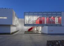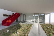 In choosing construction materials, their purity has been considered. Floors are made of concrete and steel, walls are made of prefabricated concrete blocks, glass, and prefabricated concrete panels, and stairs are made of cast-in-place concrete without any other materials.