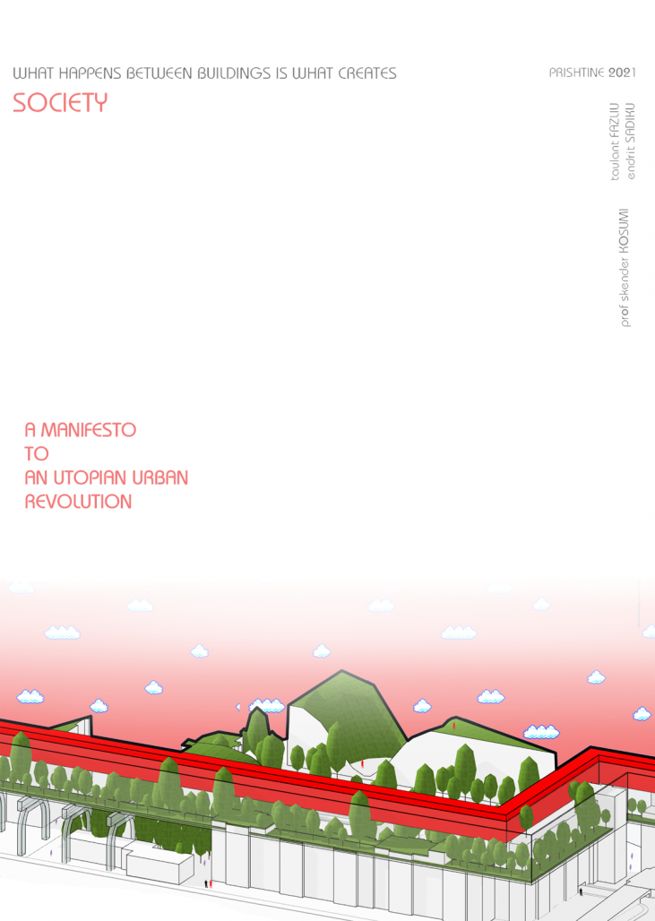We wake up, we move, we breathe, we dream and we move within an orbit of billions of years formed and realized by nature itself and later by man, the impact of the human being within the galaxy concretely the proven planet for life inside it has changed and will changed until there is human activity within it. A station, narrow sidewalk, road filled with cars and carbon released in every cubic meter, haphazard building, harsh silhouette meets the cloudy sky filled with smoke released by human actions. The misery created by the species that was supposed to love and regenerate nature is also making the earth sick, but what if we see the glass half different from what we see now, to create from within the mind created by the subconscious of rebellious citizens for it created something we would call a MANIFESTO a city within a city a unit separated from another unit a limited space that offers comfort to live, what if we respond to the temptations to make the day from one to two to create time to cut down on activities to move the rules, we remove the harsh traffic full of noise and replace it with an urban jungle what if we ask for a little space for a chaos a diversity a diversity and more importantly what if we return the citizen to the city we return life to the air, the water of nature, what if for a while we breathe freely, what if for a while we listen to the spiritual maybe the architecture itself reflects now more than ever to the dimension fourth. The future of the world population is urban, thus a return between prehistory and modernity in search of human sustainability.