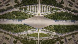 One of the key elements was to minimise the footprint of the station, so after exploring different spatial configurations, an eye shaped footprint, widest at the centre, where the main functions converge, seemed the most efficient use of space. This was enhanced by stacking the public programme of the station above the platforms deriving in a more compact scheme, connected across levels with vertical circulation and featuring a grand hall flooded with light and natural ventilation.