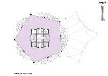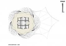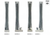 The FLOWER-DRESS SHAPE curtain wall will enclose a composite concrete core with steel framing. Apertures in the curtain wall at regular intervals will assist in venting wind pressure against the tower; the apertures will also house window-washing systems and .air intake and exhaust systems on mechanical foors