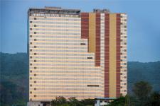 As the approval for the design layout was already in place, the client brief given was, therefore, to build further on the pre-approved design layouts. The client was also concerned about the construction cost of building in composite steel despite professional recommendation; as the cost was supposed to be in remittance due to expected low rents of the area. Keeping the design framework and the construction cost low, the challenge of constructing the building ahead of its time while staying true to the core identity of the structure was undertaken by the team of Access Architects. It is one of the rare structures where the cost of construction was the same in RCC as well as composite steel. The IT Building is spread over an area of 1.8 million square feet and comprises a basement, ground floor, five parking floors, and thirty storeys. The client intended to lease the workspaces created, hence the layout of the tech block demanded larger footprints within the same framework.