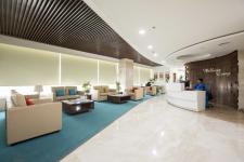 The founder, Mr. J.C Chaudhry, who is also the founder of eminent educational group Aakash Institute along with Dr. Ashish Chaudhry, envisioned to create this hospital as a sheer extension of their philanthropist vision to provide the highest level of tertiary healthcare to the residents of Dwarka at affordable prices. Further, To accentuate their vision to create a healthcare facility that impels the patient and the visitor to feel congenial rather than being an immigrant to a serious 'Institutional' setting, The design aimed at creating a pleasing multi-height entrance foyer, embellished in warm healing colors which transcends with an ambrosial aroma of brewing coffee at one corner of the entrance foyer. This experience is further elevated through the open 'central courtyard' that acts as a green refuge for the patient and the relatives. The ground floor houses the entire out-patient, emergency and the cafeteria, Followed by the Dialysis, Specialized day-care, and VIP administration on the first floor. The criticality of the program begins to surge as we transcend higher in the vertical stack, with ICU's on the second and OR’s on the third floor. This is then sandwiched by a service floor for the augmentation of the AHU's and other services of intensive care facilities, and the dispersion of plumbing and medical stacks of the IPD floors above. The entire vertical circulation is augmented by two lift cores, discrete for the visitors and the doctors, and an effortless horizontal circulation through the various departments that enable smoother functioning of the hospital and adding to the core essence of patient care in a more utilitarian stance.