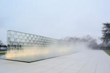 The memorial space forms a rounded-up city square from the southern front of the Main Railway Station to the Vukovar Avenue, doing away with the traces of periphery and remains of the industrial zone, envisaging a railroad under the ground there as well. The central portion of this ample square is intended for the memorial – a composition of several elements lined up from the north to the south: The Wall of Light, at a certain distance the Altar-Mensa and the Portal-Pavilion, which together constitute a place of official, protocol-regulated reverence. Laterally stretches a dense green wall of yew trees and serene lawns. The green wall does not partition but stress, the square is overseeable and open.