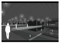 ATLANTIS STARTED ITS ABOVEGROUND AND UNDERGROUND ACTIVITIES. THE MONOLITHIC MASS PLACED ON THE DAM WALL WELCOMED THE VISITORS. THE FIRST FLOOR CONSISTS OF PUBLIC SPACES TO ENABLE THE SOCIAL GENERATION; ENTRANCE TO THE GREEN LAB, OBSERVATION RAMP OF THE GENEBANK, MEETING AREAS, EXHIBITIONS, SIMULATION ROOMS, DISCUSSION AREAS, WORKSHOPS, ETC.