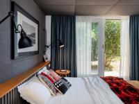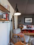 With little need of storage the bedroom is designed spacious. The bathroom and the wc walls are covered with handmade ceramic tiles, with the oak parquet flooring used all around the house, and with kilims accompanied.