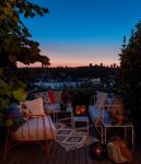 The garden provides a few different seating area options. A glass covered all season seating area, a wooden deck over Bosphorus, and a dining area under the vine.