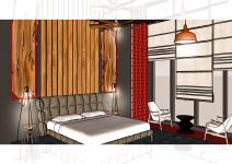 4.Master room has a bright color which shows power and enthusiasm. The Master room has a small sit out, walk-in closets, and a courtyard bathroom filled with natural light. Material: teak wood, exposed brick, cemented handmade tile, and metal lamp.