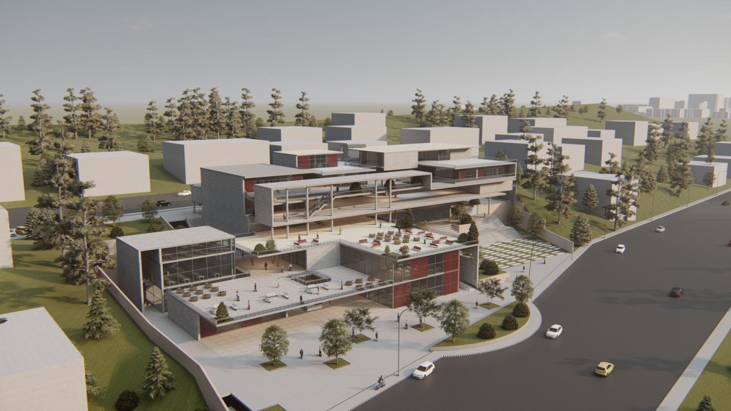 Choosing Al Webdieh, Amman was essential as it presents the mix of Amman heritage and modern atmosphere, culture and history. The schematic form of the design represents the lifestyle and experience of Al Webdieh. The site was choosen based on systematic approach by having high slope level in order to maximize the visual aspect of the view. In addition, the soul of this location is inherent by the diversity of the buildings level which draws a perfect topview of platforms that helps to achieve a higher interaction between masses.