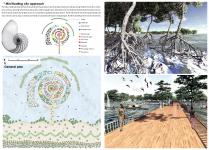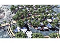 The BIO-SHELTER FLOATING CITY project aims to restore unstable ecosystems in order to give to people the possibility of living in harmony with the environment. On the one hand we have effective redevelopment of the coastal dune in order to counteract the progress of the sea; and on the other hand to new perspectives to explore constructions on water via the proposal a floating mini city combining the traditional biomimetism and architecture of the Yoruba people. The project not only provides access to housing, but also gives access to basic services such as education, health, a park, workshops, a market, community spaces, etc. For