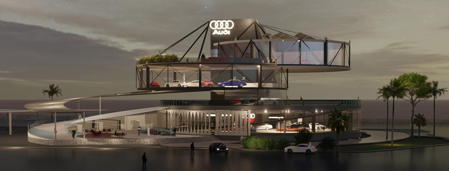 The Kingdom of Saudi Arabia has changed in the past two years, as it wasn't happened in ten years. It is attracting investors and businessmen from all over the world. That why I chose to design an Audi showroom that could attract interested people and investors. The project's site is located in the heart of Jeddah city in one of the most important streets, and this gives the opportunity to become one of the city's landmarks. The building has a high-tech design that reflects advances in technology and automobiles.