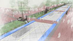 The formal idea of the project is to create a cohesively thematic shift along the entirety of the High Street Corridor, bookending the main area of shops and storefronts with two large public parks. The balance of materials, integral signage, and a new identifying public art strategy with iconic installations that are abstractions of the letter "P" (as in Portsmouth) will help encourage an interconnected and thriving downtown area.