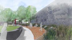 The Green St. Crossing site provides a terminus to the proposed improvements. Currently pedestrian traffic dramatically drops off as one approaching the site which consists of undeveloped empty lots. The new proposal seeks to activate this site with public park space. A large lawn serves as the focal point of the site. A series of winding paths create pedestrian movement which is further enhanced with plantings, interactive elements, and a children’s playground. The existing mural which depicts an important event in Portsmouth's history will now be able to be experienced from a lush and vibrant park rather than the current empty lot.