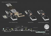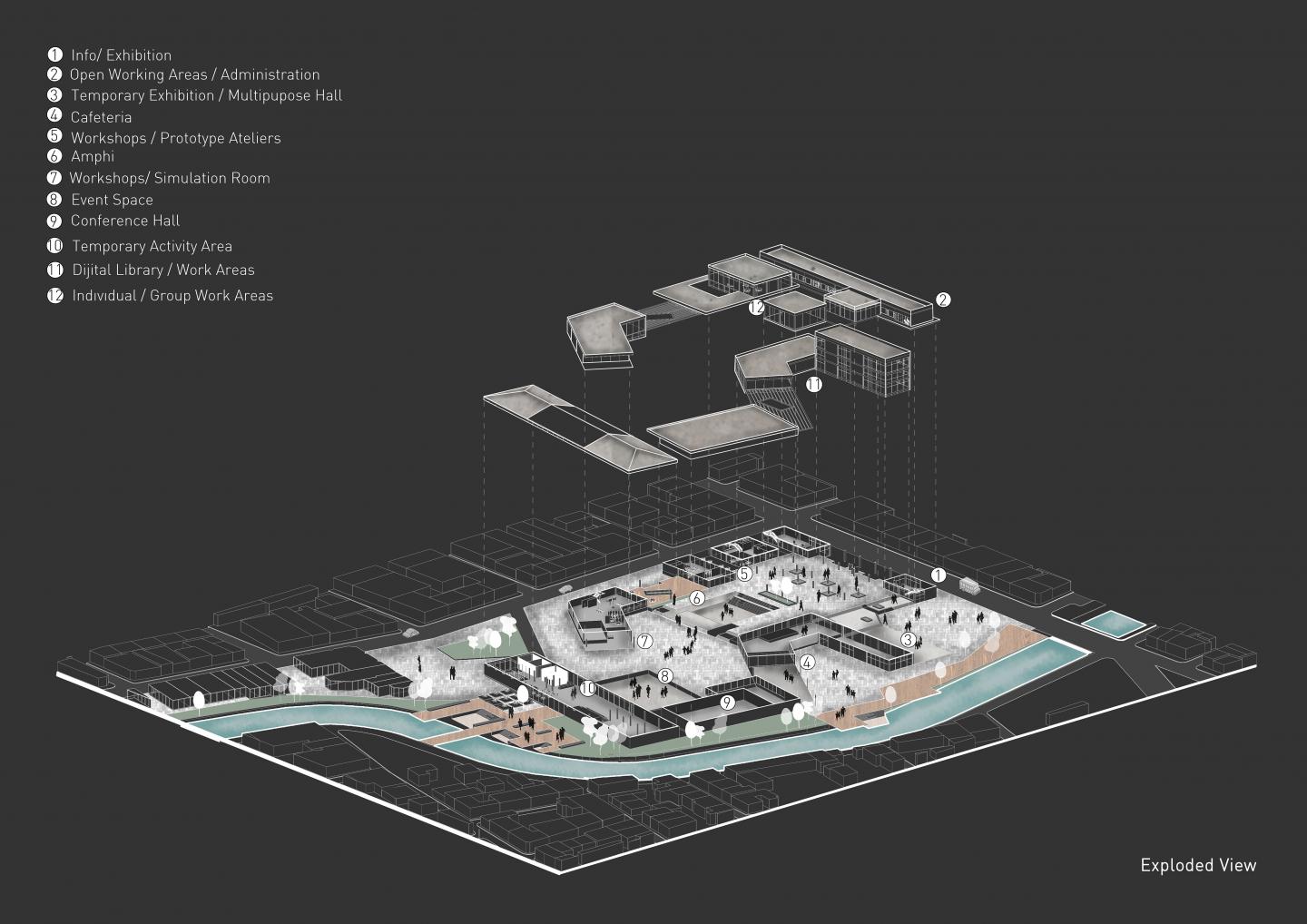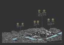 The design idea is that to redesign of the memory spaces of the city while this process is going on. The design problem is to create new open/closed spaces while preserving the existing building and spatial relationships that it presents with the existing buildings on the site and to create relationship between masses and open spaces along the Porsuk River. Designing a route in the site, from old bus station to old flour factory. The route is collected in the center and is spreaded through the masses with providing open spaces. Near the Porsuk River different function terraces that is integrated with closed spaces are added.