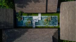 After several site analysis, the location of the spa was decided to be sat on a light slope toward the sea, hidden behind the bungalows and surrounded by jungle. A small earth path linked the new Spa with the old one, who was becoming the space for youga and Taichi prarcticing. The Spa composed of 4 buildings in rectagular shapes, linked by covered walkways, surrounding a landscape pond. The two mains building contain the Reception Area – Changing Space- Shower- Treatment – Relaxing area after treatment, while the two sub-buildings consist on ly of treatment rooms. Each treatment room had its private terrace at the back, connected to a little garden.