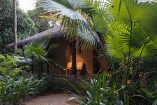 The landscape also follows the resort’s spirit, by using local plants and flowers for the garden. The only exception are the plumerias planted in the landscape pond, which represent a new beginning and expectation of peace. During the construction stage, we tried to avoid destroying the surrounding jungle as much as possible. Right after the taking shape of the buildings, the gardener began to plant new trees to replace the cut-down ones. Those trees were previously planted in the resort own nursery. Therefore, just after a little of time and a few tropical rains, the resort is ready to present itself as a building among the jungle.
