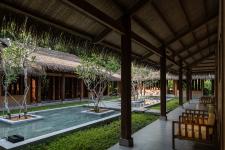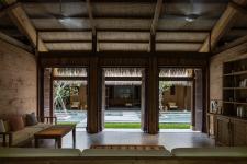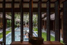 The feature of the project was the using of rammed earth walls. This also was a succession of the previously-built bungalows in the the resort. Those thick walls, combined with the extended roof and the wooden louver doors/windows, created an airy and comfortable internal space, and by that, there was no need for air conditioner. The wooden louver doors/windows with pivoting system help controlling the quantity of natural light access the inner space, depend on the moment and the mood of the guests.
