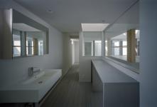 Responding to the client’s desire for privacy, we avoided locating large windows where they would be noticeable from outside and instead constructed two layers of external walls on the second story, with openings in the inner layer to let in light and breezes.