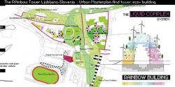 Territorial scale It is a Complex system, an INTERTWINED SYSTEM. We started thinking and idealizing about the Geomorphologic and functional conformation of LJUBLJANA trying to individuate a Genotype {a ordered city star shaped}. We started interpretating and analyzing different information given by local administration and verifying Socio-Geopolitical potentiality. Now The city looks like a modern planned city shaped like a star along longitudinal and radial corridors by alternating cords of functions. This star organizes the territory starting from the centre of the old town. Through these simple N, E, W, S, corridors, between the sections that they form, are ordered other corridors , sequentially and functionally {residential,commercial, tertiary..,industrial,green areas, cultural, educational and manufactures} .We try to combine tensions , formalizing a impure systems, a “Half-cast”, accomplice and related. A possible and metaphorical “Cenrtrifugal force” overlaps various uses of the territory putting them in relation .A multiplied and interwined system, becoming one big singularity , but formed by lots of individualities. Poljan HETEROGENITY CRITICS to the competition rules: We read the competition scheme as a classical zoning by putting different functions in different sites. We found it a bit rigid. Rather, we introduced the concept of flexiblty linking each other different functions within the Poljan territory. We planned an open and liquid system with fuzzy borders. Our aim is to accumulate density of functions getting free spaces for public uses. We see Poljan as an advanced district of services {tertiary, cultural, dwelling} immerse in a large green area, a real model of eco-friendly neighbourhood. THE RAINBOW TOWER: In the Watergate and corner city areas this system bring us to carefully mapping the zones and their possible interactions through geo-urban connectors, peatonals, infrastructures and complex “green” corridors synonymous of multidimensional fluidity. This appears to be a complex system that tries to keep in touch with every parts. An open, auto regenerating and auto recalibrating system. This system is condensed into the RAINBOW TOWER, a new magnify landmark, a symbol of the laws of nature, a living symbol, full of life in its interior and perceived from the exterior as the new hopeful skyline of Ljubljana. It is called RAIN-BOW, for different reasons: first of all, the rainbow as event driven by nature which we must learn from. Its Ephemeral, Light and Prismatic aspect reminds us to the sense of the solar energy and how is possible to take advantage of, and what kind of relation exist with sight and chromatics. Then we have The Bow, like an architectural stereotype linked to a symbolism that over the time has changed. Starting From representative, celebrative, contemplative, anti functionalist {like arcs the trionphe , obelisques} ,to a functionalist structural system; This bow has been recalled here as a new concept of condenser in terms of social, political, functional and ENERGY. It is an accumulator, a store and an attractor. In this new concept, all the old symbolism are mixed together and are turned into a new one. It is a Unique and singular Element but at the same time is horizontally and vertically multiplied.. The new concept of the tower as a container goes toward a richer concept of alive structural element which is now attractor and distributor of energy at the same time. A new eco-symbol for Slovenian democracy in which with more FRESHNESS ,it will be possible to start the holistic mechanisms , proper of the diversify and complex Contemporary era.