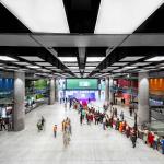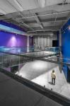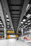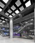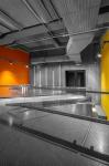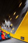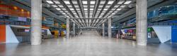 The lobby is the connecting element of the halls serving as the focal point of the complex. It has the ability to play variety of roles, including concerts, artistic and cultural events. The multifunctionality of this large space has been enhanced by adding two elements which are a bridge and a communal seating.
