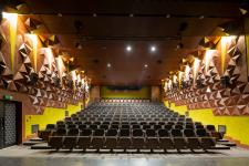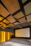 The appropriate acoustic features prevent any kind of noise and improve the sound quality during the concerts. The outer walls of the halls are covered with sound absorbent tiles. There are also many boxes, with the same material, used in the ceiling for the lighting.