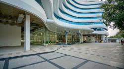 To enable wind flow and ensuring that all units get sufficient ventilation, the North and south are retained as open to allowing for the movement of summer and winter winds. In the absence of any formal site influences, a fluid, rhythmic, yet continuous form is inspired by nature to create an iconic identity in the otherwise mundane surroundings achieved by the creation of gradually, steeping up terraces. A Roof line is developed that follows the floor profile to complement the overall form of the built volume resulting in a structure that bears a resemblance to the sand dunes in the deserts of the Middle East with the distinct floors characterized by the ripples on a sand dune. Adopting the innovative technology of a space frame with glass, polycarbonate panels to create a semi-covered roofing system at the top, to which the building tapers to and enables the aerial view to be viewed as a vague ‘8’. The parapets are further softened by the optimization of greenery and planters along the railing. Embedded lighting design further accentuates the curvilinear form of the building.