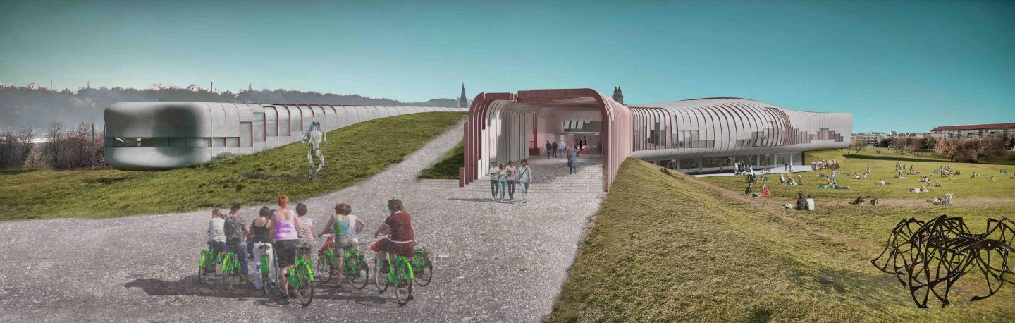 Its design has not been based on the concept that tries to attract perception by using high rise building with compact basement area and inner areas that are far from outer field ; instead It has been designed to be as a part of the green field with its increased environmental relation surfaces and galleries that have balanced relationship between inner and outer areas. To reduce the reflective surfaces that emerge in this design , soil that will be obtained by excavation for the foundation will be laid out to the top of the 1/3 of the building. In this way , not only the ecological screening area is increased but also carbon emission which would be emerged during transportation of the excavation soil is decreased.