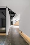 Private offices are facing the main open workspaces that are anchored by the two conference spaces on both ends. A main conference space forms simultaneously the lobby space with an unfolding lounge component. A large two-story space serves as main staging area with various social amenities such as kitchen, library and broad room-spanning stairs that connect the outdoor via a 24ft wide sliding door, giving large flexibility to the use of this space.