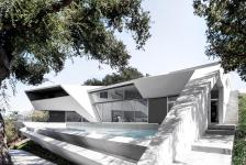 The House positions itself on a steep undulated hillside in Hollywood Hills, engaging the topography as a form-generator and programming device. While the building object purposefully remains in contrast to its surrounding as an artificial landform, the spatial organization follows clearly a downhill orientation, therefore maximizing individual views and allowing the building-form to envelop a cantilevering deck with pool and so create privacy.