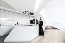 The residence itself allows ambiguous readings through a fluid interpretation of its main elements: walls can be read as roofs and vice versa. Each element is part furniture and part architecture. Therefore, the building stays primarily true to its massing while refining its shape through an inherent logic that is part functional and part aesthetical.
