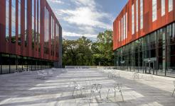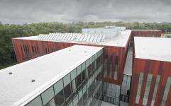 Befitting the campus’s prominent place overlooking the Potomac River, a key goal of the design was to return the campus to harmony with nature. Nearly all on-grade parking was removed and returned to its native state, and the LEED-Silver certified Centrum building was upgraded to consume 31 percent less energy than a typical building of its size. Solar hot water arrays put the campus on a path towards achieving net-zero energy use. A 30,000 gallon cistern collects rainwater for reuse in the irrigation.