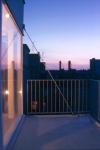 The window installations on the corner frame a diagonal view onto the spacious courtyard which can be accessed on the expansive balcony up in the air.