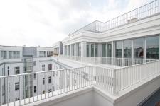 A large Berlin block of flats in Bötzow district, built in 1905, with a representative front building, side wing and rear wing was extensively refurbished in a partially inhabited state.