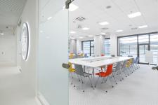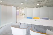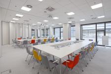 In a similar way the conference rooms are designed - their bright decor is complemented with chairs upholstered in bright colours.