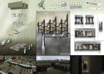 The resulted diagram was translated into the map of the relationship between the private and the public element and simultaneously into site topography. The trigger of the prisons spatial organization lies in the joining of the two deepest parts – private areas of the surface with a direct path. The private path breaks the most public spaces (highest parts of the surface) in two sections: a public area for both the detainees and their family and friends (visiting area) and a public area only for the detainees. Other prison uses are located on both sides of the axis that join the private areas, according to the diagram.