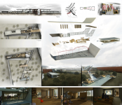 The public zone is located on the ground level of the building. This area is divided in 5 rooms – boxes. The motion in this building is not linear and breaks the boxes in different spots. This part of the building is designed in order to encourage collective activities, entertainment and communication.