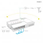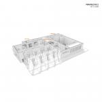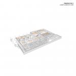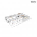 The building greets the user with a canopy supported by parametric-designed diagrid columns, which also act as luminaires for perimeter lighting. The columns are powered by PV cells on the roof. The building also embodies passive heating and cooling strategies and separate heating zones for greater power efficiency. To decrease the overall carbon footprint, stones from local quarries and local wood work with lower embedded energy are preferred in the design.