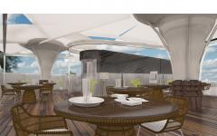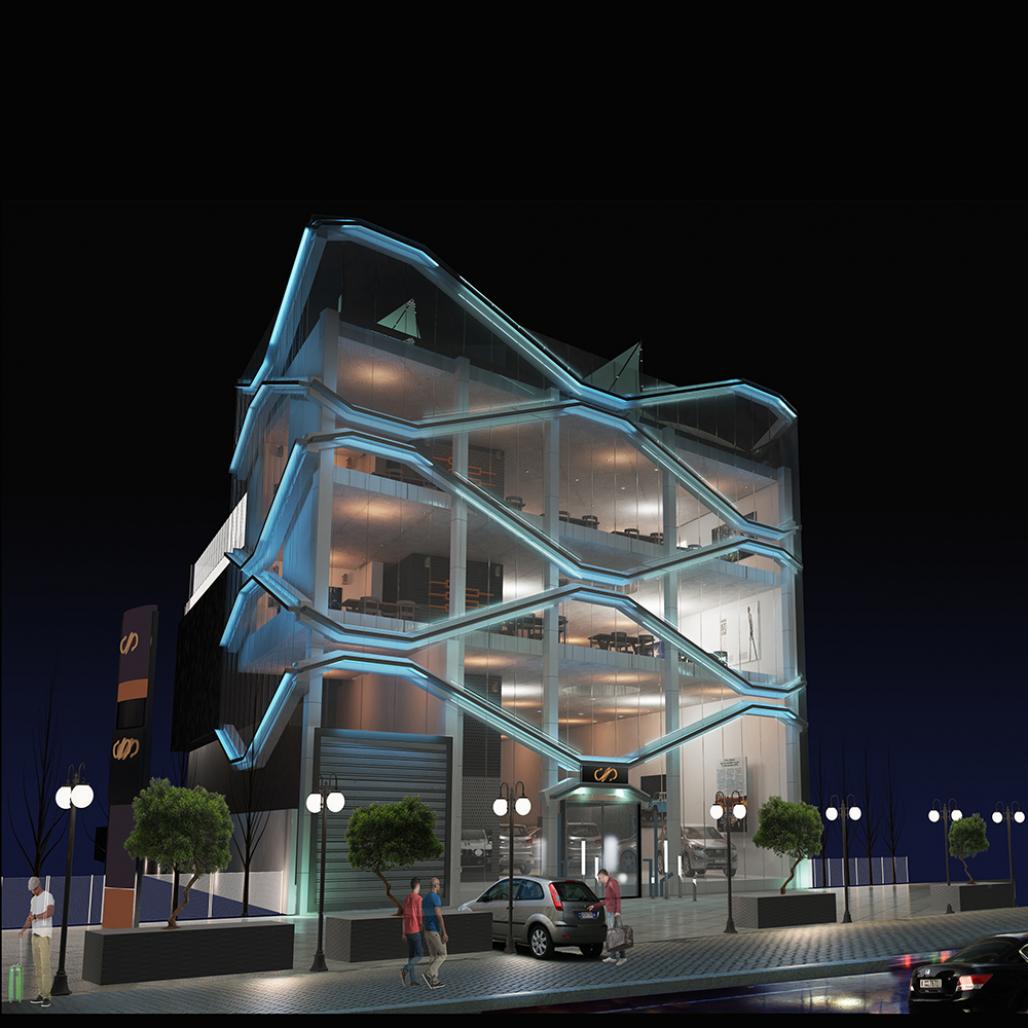The main theory of design for this project was to raise the chance of being watched as an iconic building in the anzali freezone where so many other buildings are constructing nearby. and when we decided to handle this design we found that that place is suffering from lose of a unique building including both commercial and hospitality functions. so we decided to emphasis on night view of building with transparent facade that shows the inner activities on building and a colorful shiny facade layer in order to attract people observing nearby and define a place to bring them together for buying , eating m playing and experience activities related to car and fun , like F1 simulator and etc.
