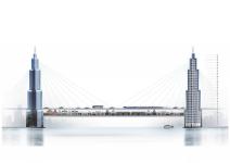 One of the concept projects is the “TOWER BRIDGE” which is a multi-purpose bridge (Road-Rail-Residence-Rental-Rooms) with a double-decked suspension over the river. The Tower Bridge consists of two high rise buildings on each side that covers the bridge pillar structures to be a fascinating building makeover. The upper deck suspension of the Tower Bridge has lanes for motor traffic and a middle lane for high speed train transportation. The lower deck suspension consists of rental shops, VIP car parking, lanes for bicycles and pedestrians.
