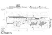 Following the natural slope topography existing earth/soil is carried and reused above the accommodation volumes to create a green roof which can also be seen from the restaurant terrace as a part of the natural environment.