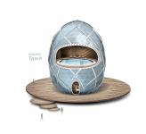 An idea a unique egg-shaped residential building. Three story , 350 sq.meter area resembles a huge , beautiful Easter egg. The first and third for 2 families resident , second floor is center area accommodate with infinity pool , outdoor activity area. It is said to look like an egg standing on the earth; an artificial waterfall surrounds it .