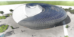 It was intended to create a dynamic form and an auditorium which is very much contrasting to the site