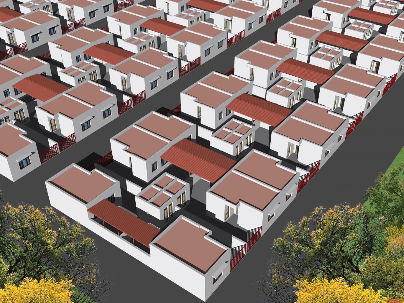 Kangan Khera is a small village located in Muktsar district of Punjab. A major chunk of the population of this village lives below poverty line, the so called Economically Weaker Section of society (EWS). With a aim to provide houses for all, the government decided to build a residential colony for about 400 persons. The complex has been designed on a plot of about three acres, and it accommodates 82 houses. The hallmark of planning and design is a strict Cartesian pattern of streets and lay of plots. This approach facilitated easy and error-free execution at site. The widths of streets vary from 18 feet to 24 feet normally. The houses are arranged to form clusters thus sharing maximum common walls. This helped in economizing on the cost of construction.