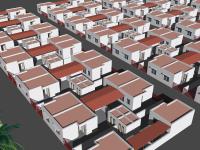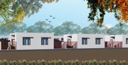 Each house has been designed on a plot of 105 square yards (24-6" x 38-6") and has a covered area of 548 square feet. This area comprises three components : (1) main house having 2 rooms, a kitchen and a small verandah (365 sft); (2) toilet block comprising one bath room and one water closet (55 sft); and (3) a cattle shed (128 sft). The houses have been designed with the aim to economize on the cost of construction. To achieve this, all the three components of the house have been located in such a way that they form compact clusters of various units when grouped together. This results in cutting substantial cost of construction.